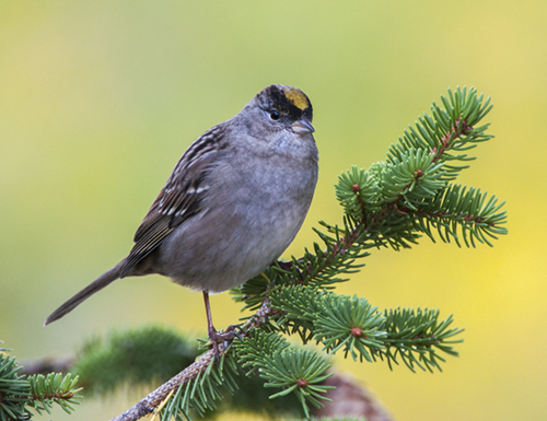There’s Gold in Them Thar Hills!Alas, it seems the miners of 160 years ago missed out on most of it. The Golden State holds so much more amber wealth and beauty than just the lustrous mineral. Golden hues deck our world liberally, often with ephemeral but recurring glory and ache. They join with pinks and grays to brush our skies at dawn and dusk. In spring they gleam from the soft petals of poppies and the burry stripes of the bees who visit them, and the sweet honey that those two together produce; in fall, the hills and fields of dried grass, especially under sun after rain, glow goldenrod, and maples and oaks effuse geysers of leaves radiant with mustard and ochre and burnished apricot; blonde cider flows from foothill orchards, and under foothill streams trout flash their brilliance. Gold shines in the eyes of blackbirds and eagles, and in bright braids from sun-dappled rivers and lakes; and this time of year, every year, from the optimistic caps of brown little birds, like something hopeful in the miner’s pan. Golden-crowned sparrows are mostly a camouflage of browns and grays, perfect for hiding in under-brush shadows. But like so much of life, they have their shine, too—just a modest dash of color, for them. Adults wear their golden crowns offset with a circlet of black. Young birds sport a smaller, paler spot of yellow, muted with fine black streaks and bordered with a nondescript earth tone, like last year’s leaves. Some observers note that the pinkish bill of young birds goes gray with age, starting with the upper mandible. These sparrows have been northward throughout the summer months. Denizens of the west, they nested from northern British Columbia up into Alaska, as far as the Arctic Circle, where, tucked among grasses and shrubs in boggy meadows, they wove a dense cup lined with feathers or moose hair, perhaps just above spring snow but most often on the ground. They raised a clutch or two with about four eggs in each. Now both parents and fledglings have flown south, centering their winter range right here in northern California. They can be seen at backyard feeders, although they are generally wilder and scarcer than their racier, more numerous cousins, the white-crowned sparrows. Like many sparrows, golden-crowns have a beautiful voice. In our brushy yards and hillsides they can be heard on sunny winter mornings, singing a clear Oh, dear, me! that manages to be both woebegone and beautiful. Studies on these birds are few, but the sparrows are part of recent measurements of mass bird migrations. Weather radar, with increasing precision, has in the last several years harvested information on not just storm clouds but on clouds of birds. The researchers report spring migrations over the US/Canada border at about 2.6 billion birds. The return trip, coming south in autumn with a new season of surviving fledglings, numbers about 4 billion. Those nesting seasons are immeasurably valuable. They keep the gold recurring in California. |