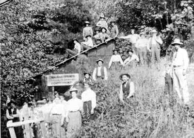 Upper Soda Springs, Shasta Springs & Ney Springs By the time Upper Soda Springs closed it had already been eclipsed by picturesque Shasta Springs just up the road, a truly high-class operation and probably the most remembered local mineral springs establishment. Heavily promoted Shasta Springs was wholly a product of the arrival of the railroad. It opened in 1890. Trains delivered members of the “leisure class” laden with trunks and prepared to stay a couple of weeks or even the entire summer to the resort’s own elaborate train station. From there visitors took a 650-foot water powered tram or hiked the steep Zig Zag Trail through the forest to the large bench above the river where sat the lavish sprawling resort.