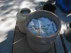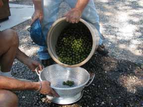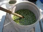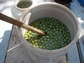 | Picking the olives, Sept. | In the lye solution. | Weighted down with a clean towel. | Draining, soaking, draining, soaking. |